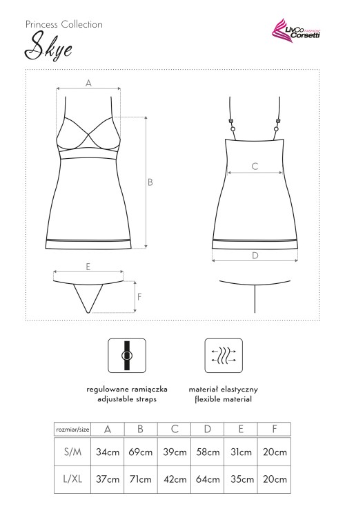 Wyjątkowa koszulka na regulowanych ramiączkach o lekko dopasowanym fasonie ze zwiewnej, szafirowej tkaniny. Na biuście oraz w linii pod nim dekoracyjny, złoty kwiatowy haft na czarnym tle. Na dole koszulka ozdobiona złotym paskiem. W komplecie stringi.