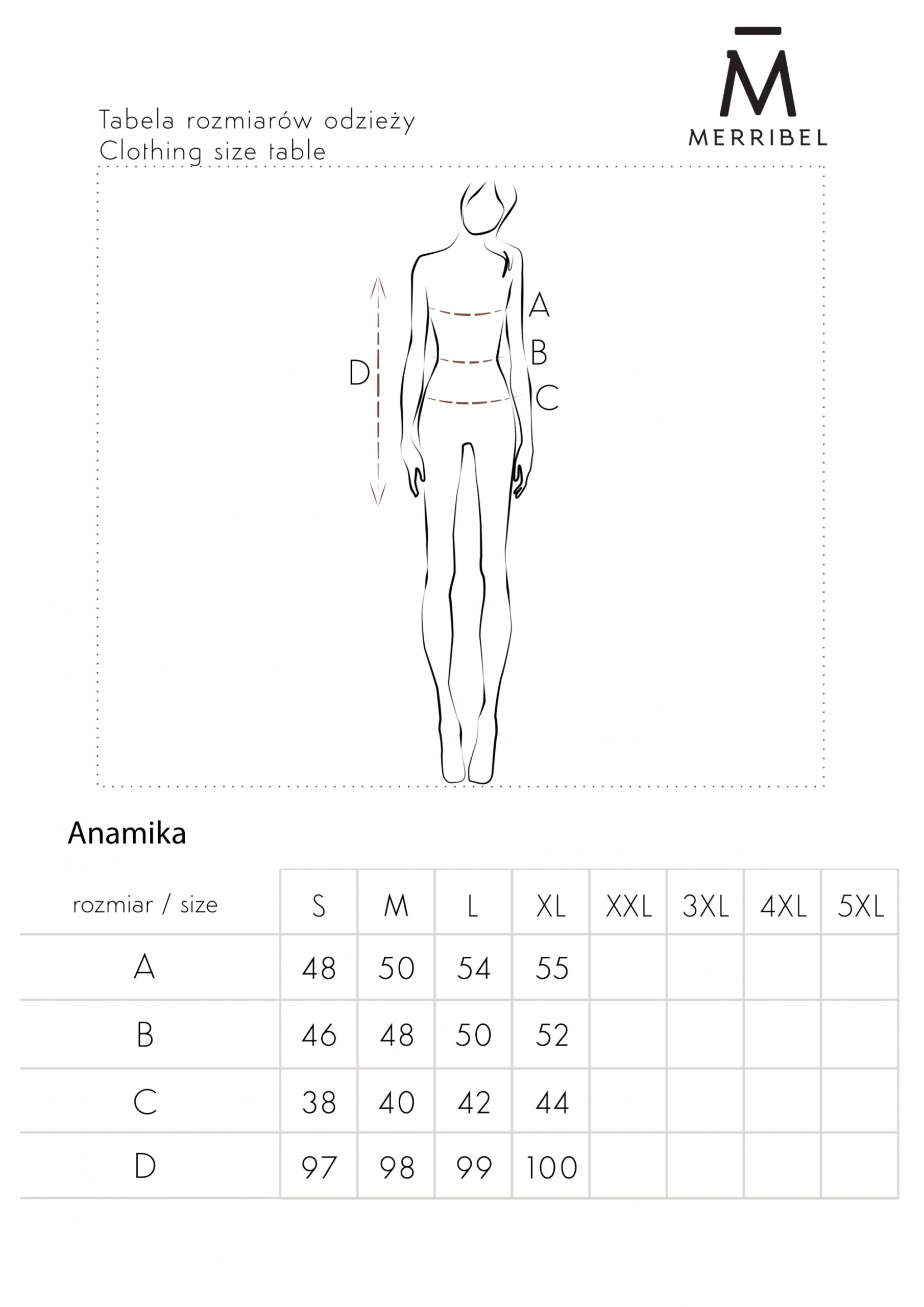 Tabela rozmiarów odzieży Merrible T1