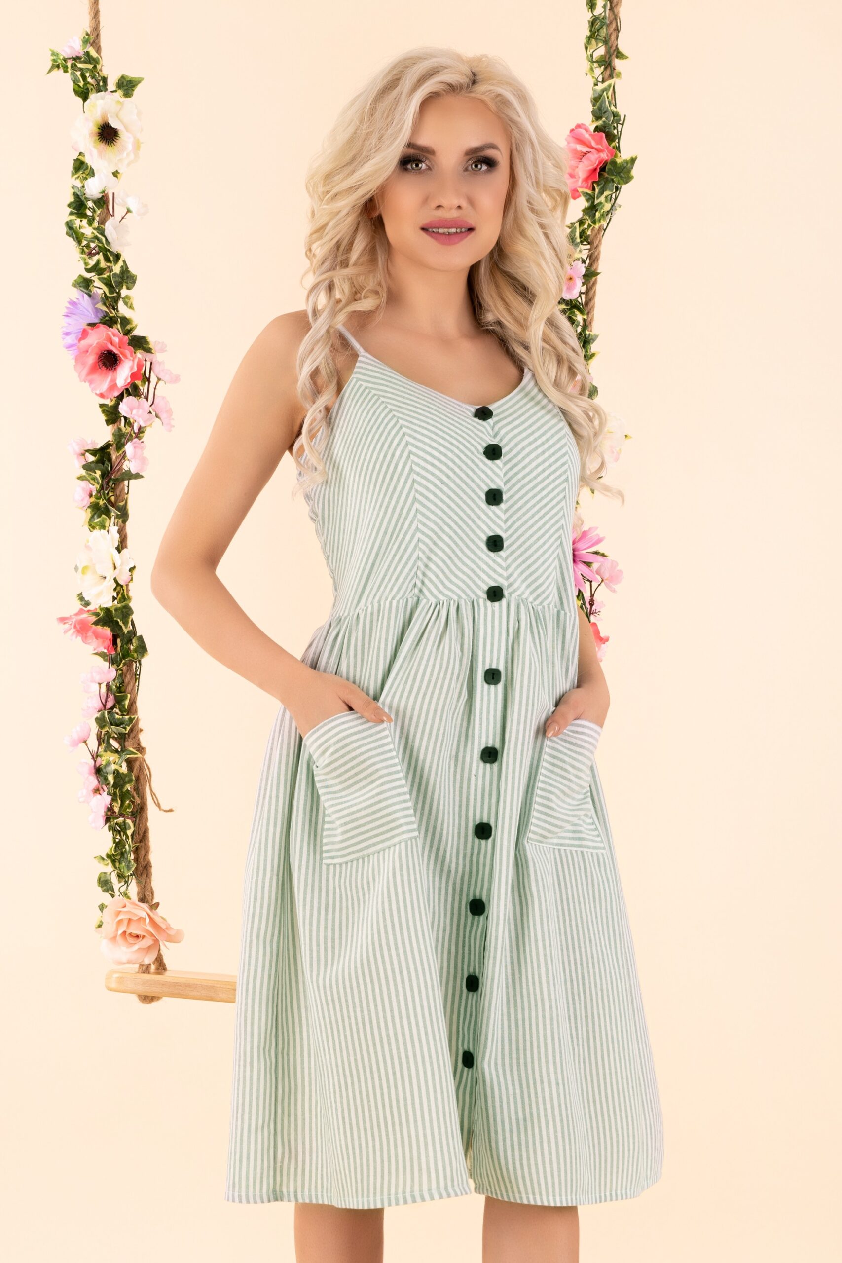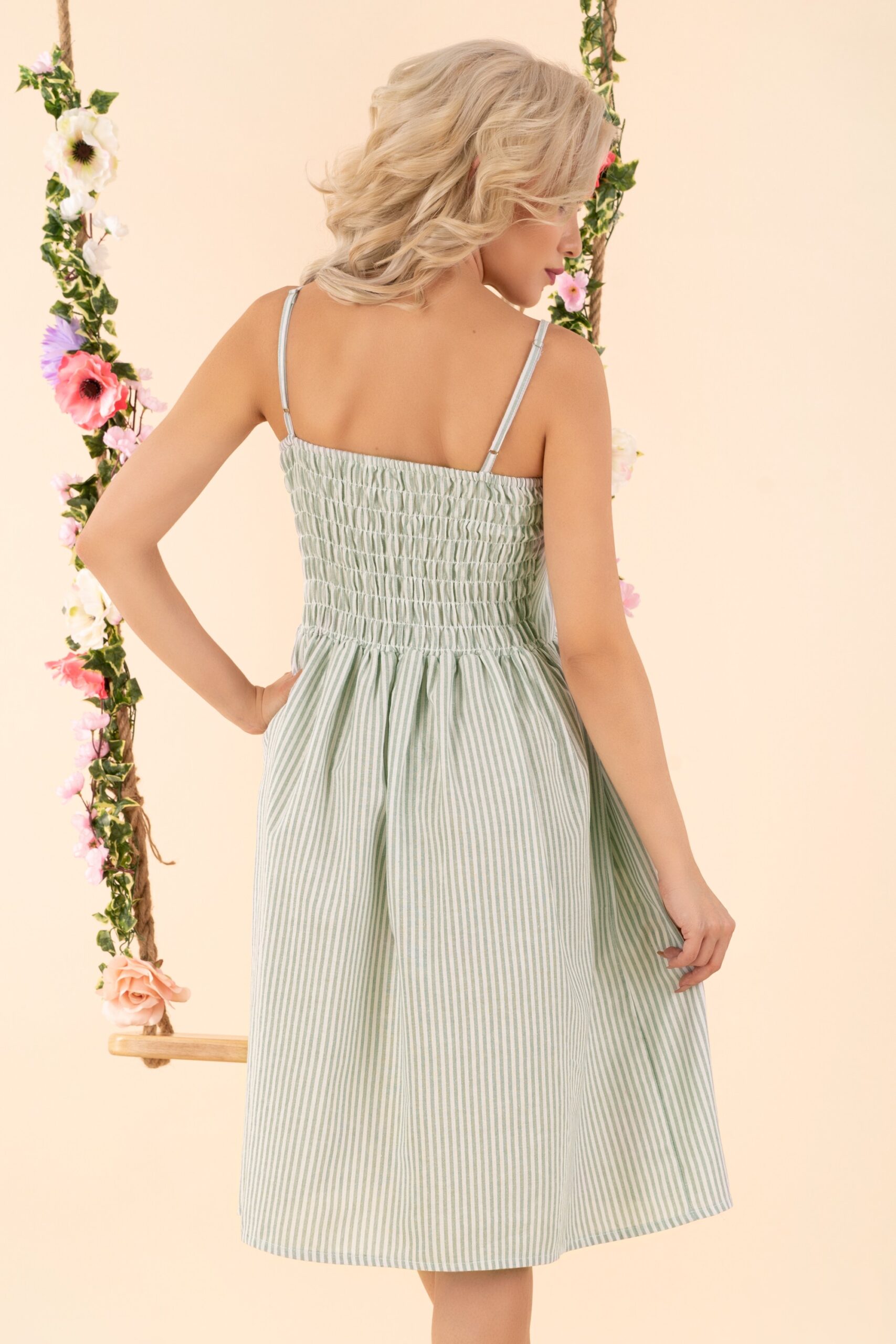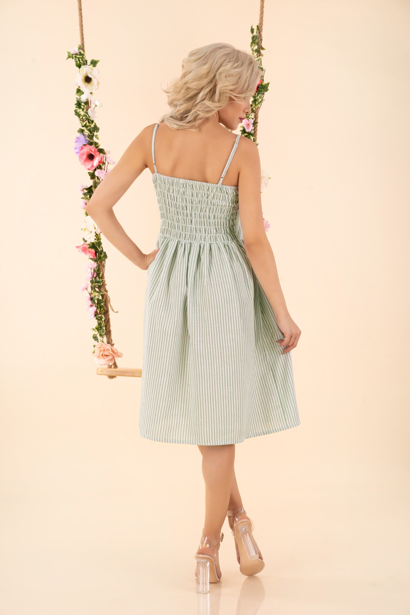 Sukienka Eviniam w kolorze miętowym, dostępna jest w czterech rozmiarach: S, M, L, XL. Skład materiałowy to 65% POLYESTER 35% COTTON